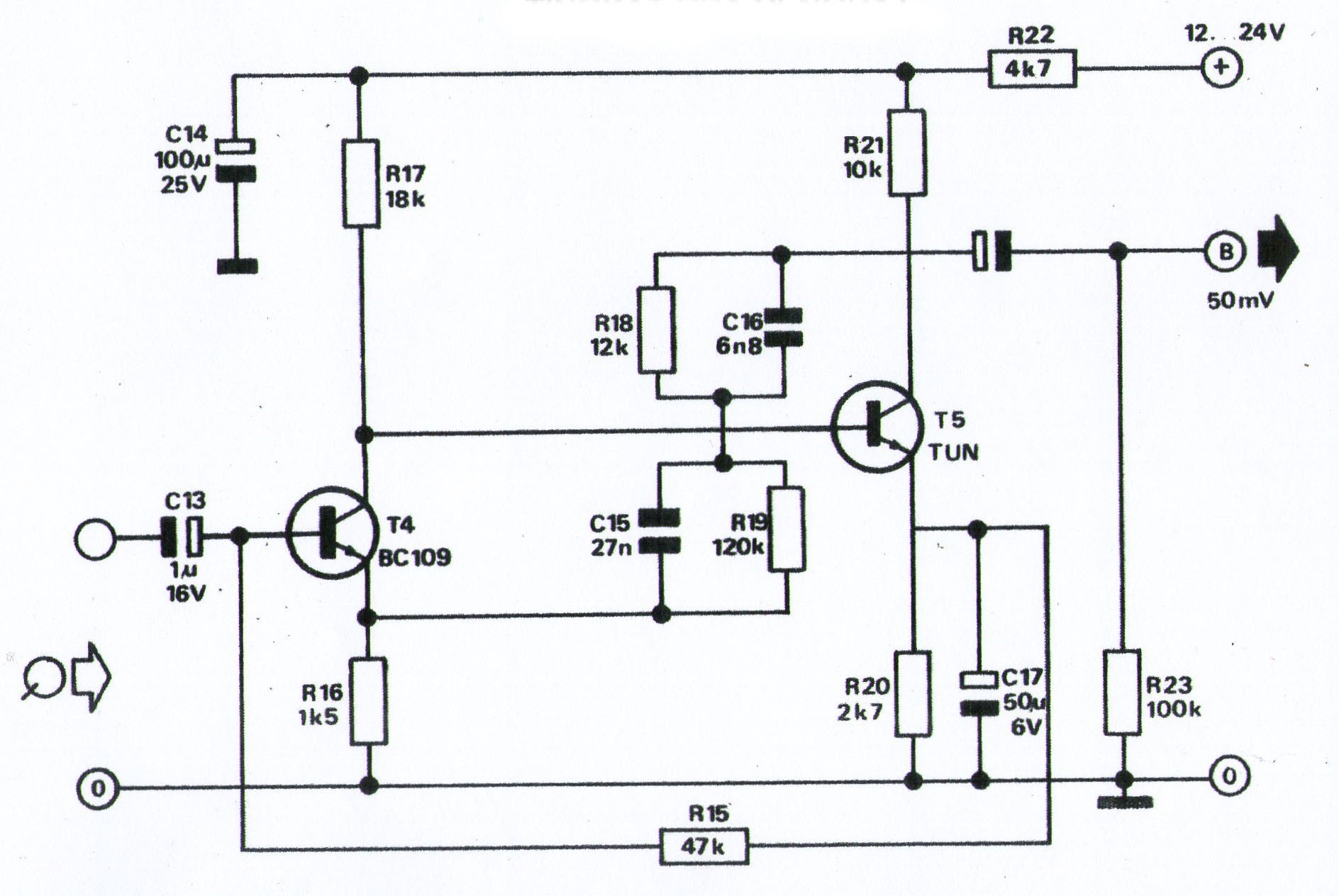 Rangkaian Pengeras Suara (Amplifier) ini dapat menghasilkan kualitas audio cukup baik dan cocok dipergunakan untuk ruangan yang tidak terlalu besar. Dalam merangkai rangkaian ini agar diperhatikan waktu pemasangan sistem pra penguatnya/preamp jangan terlalu dekat dengan sistem catu dayanya. Prinsip dasar dari rangkaian ini adalah penguat dari T4 dan T5. Untuk bagian Tone Kontrol guna mendapatkan penguatan yang sesuai dapat diatur dengan cara mengatur resistor R4. Juga waktu pemasangan speaker harus dihubungkan dengan titik ground dan selanjutnya letak terminal input dan output agar dijauhkan dengan terminal catu daya. Hal ini dilakukan untuk menghindari terjadinya distorsi pada rangkaian yang dibuat. Selamat mencoba.